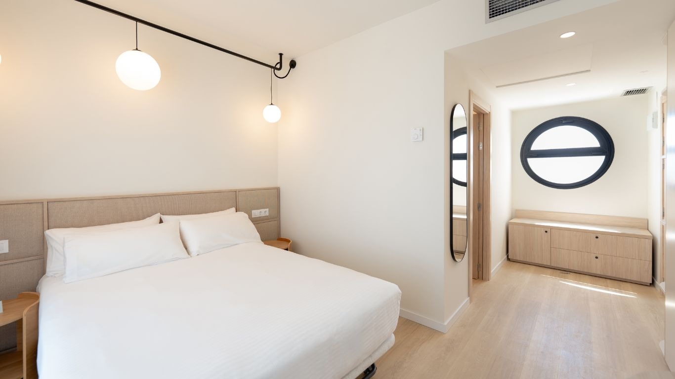 Las nuevas instalaciones incluyen habitaciones dobles, triples y cuádruples, todas con terraza o balcón, baños completamente equipados y una ambientación basada en tonos suaves, materiales naturales y textiles de alta calidad, pensada para ofrecer una experiencia acogedora y funcional a familias y viajeros de ocio.