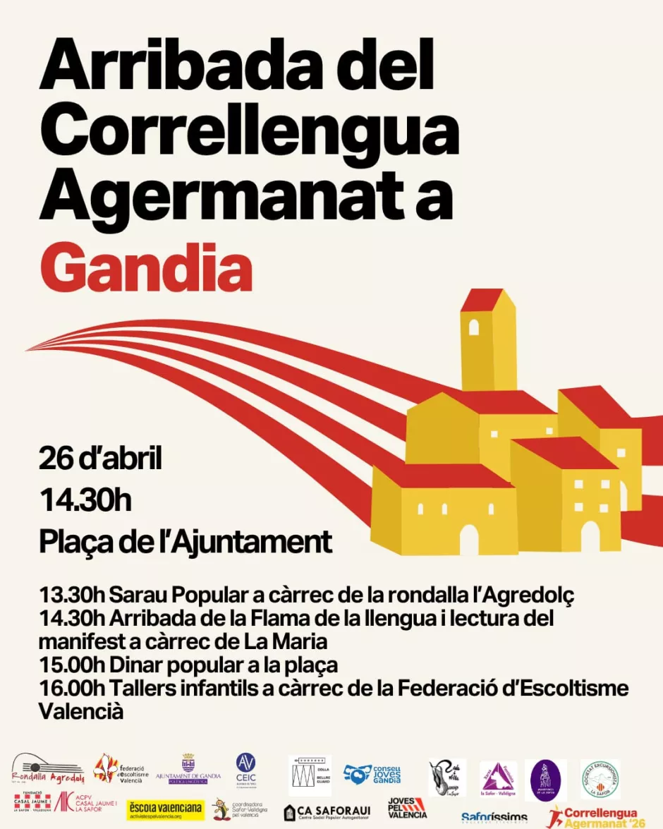 La llegada del ‘Correllengua Agermanat’ en defensa de los ‘països catalans’ a Gandia el próximo 26 de abril ha reavivado la polémica política en la ciudad tras la aparición del escudo del Ayuntamiento de Gandia en el cartel oficial del evento, un hecho que distintos sectores interpretan como respaldo institucional.