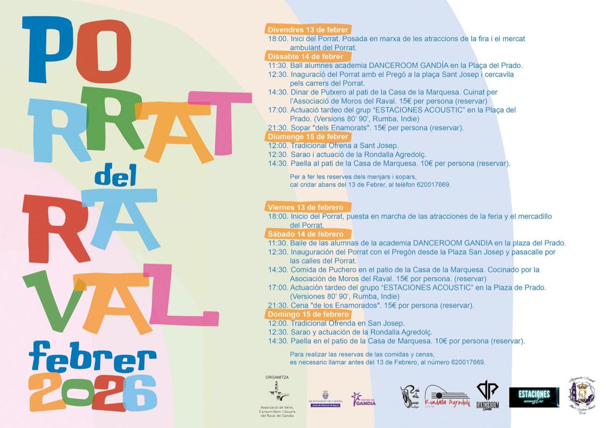 Gandia celebrará este fin de semana la XXXIII edición del Porrat del Raval, una cita ya consolidada en el calendario festivo de la ciudad que llenará el barrio de ambiente, tradición y actividades para todos los públicos entre el viernes 13 y el domingo 15 de febrero.