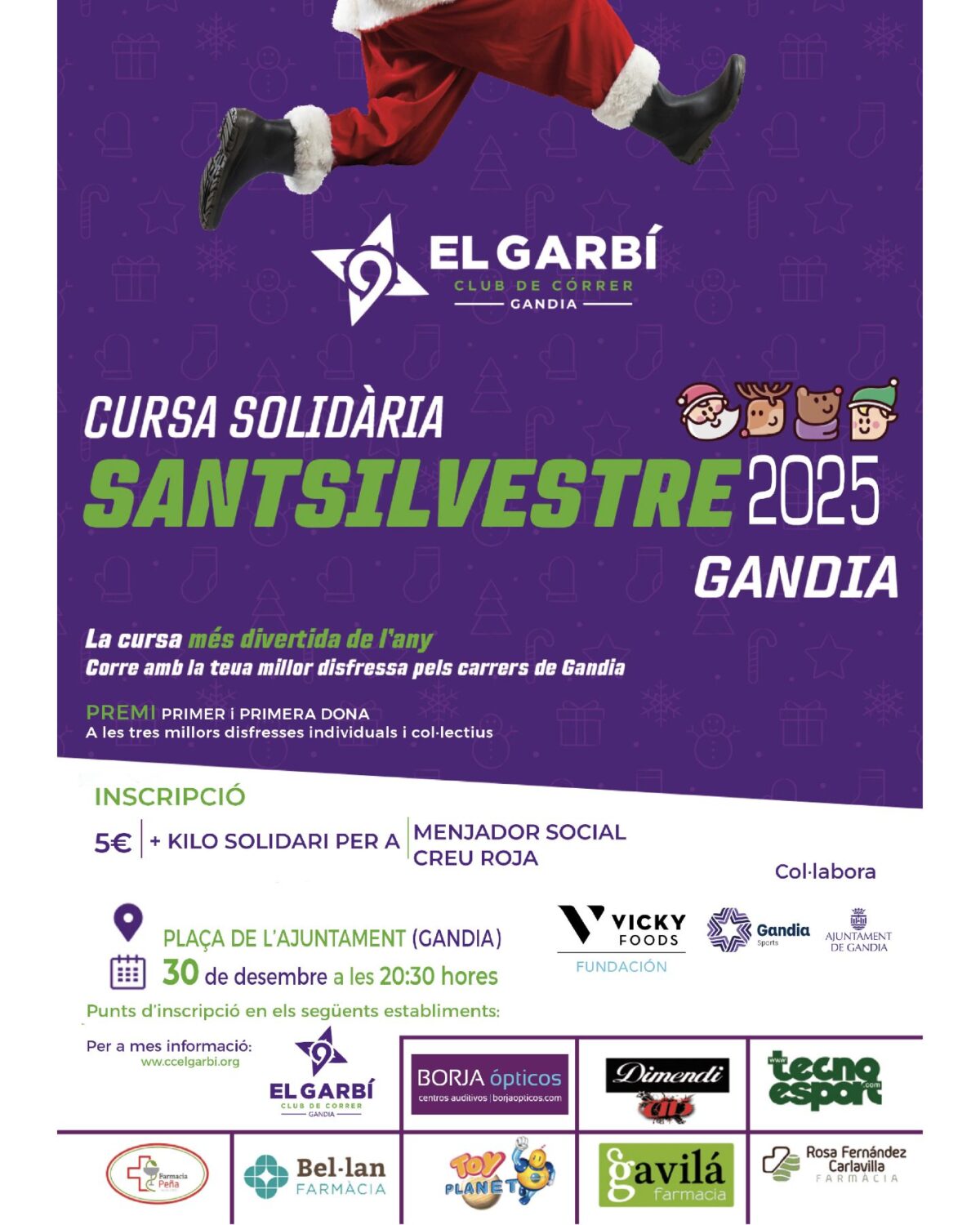 La carrera se disputará el martes 30 de diciembre, con salida a las 20.30 horas desde la Plaça de l’Ajuntament de Gandia, y contará con un recorrido urbano de aproximadamente 3 kilómetros, apto para todos los públicos.