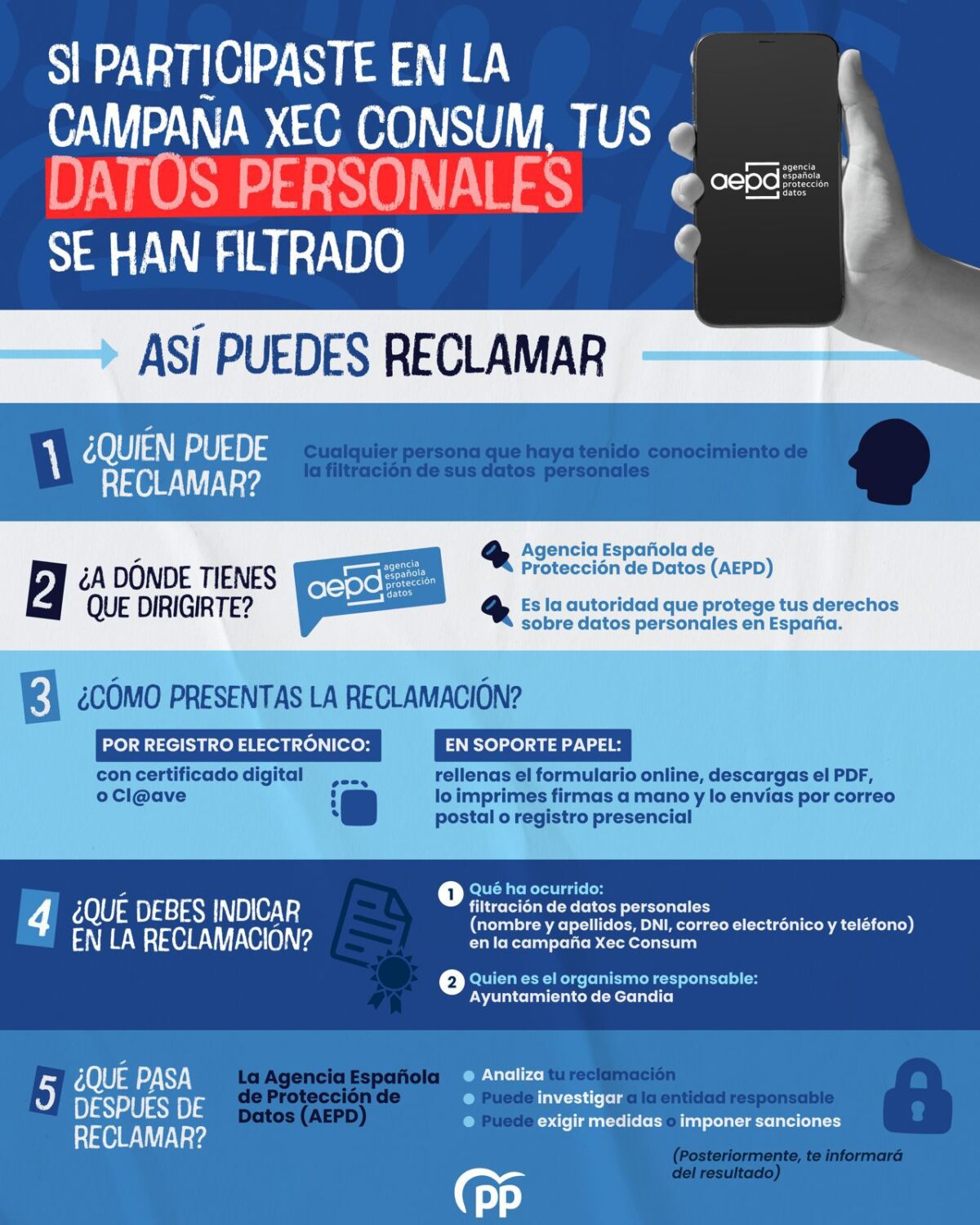 Además, el PP ha difundido una guía informativa sobre los derechos de los ciudadanos ante una posible vulneración de datos personales.