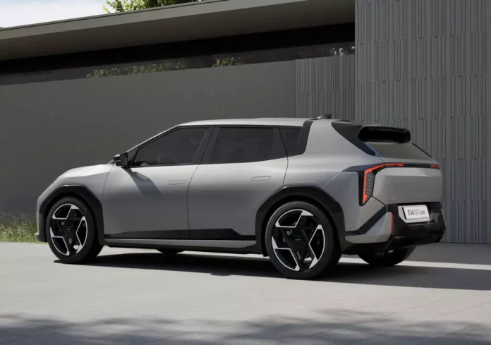 La versión 5 puertas se caracteriza tener los pilares C verticales negros, con unos pasos de rueda muy marcados y llantas de 19 pulgadas. Su zona trasera añade unos amplios pilotos traseros y una luneta bastante inclinada. Las medidas del nuevo KIA EV4, en modelo berlina es de 4,730 metros de largo y 1,86 de ancho y las del cinco puertas de 4,43 metros de largo y 1,86 de ancho. El maletero es de 435 litros para la versión de 5 puertas y de 490 litros para la de 4 puertas.