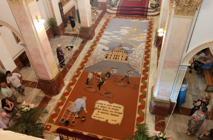 Además, la alfombra rinde un emotivo homenaje a Vicent Estevan, histórico creador de esta tradición durante 68 años, y que falleció recientemente. Su recuerdo está presente tanto en la composición como en el sentimiento compartido por toda la comunidad.