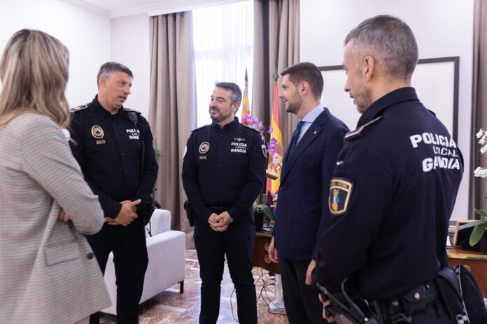 El alcalde de Gandia recibió en el despacho de Alcaldía a la concejal de Protección, Seguridad y Convivencia, Lydia Morant, al comisario principal jefe, José Martínez Espasa, y a los agentes tutores Jonathan Arcos y Julián González, quienes impulsan el programa en los centros escolares.