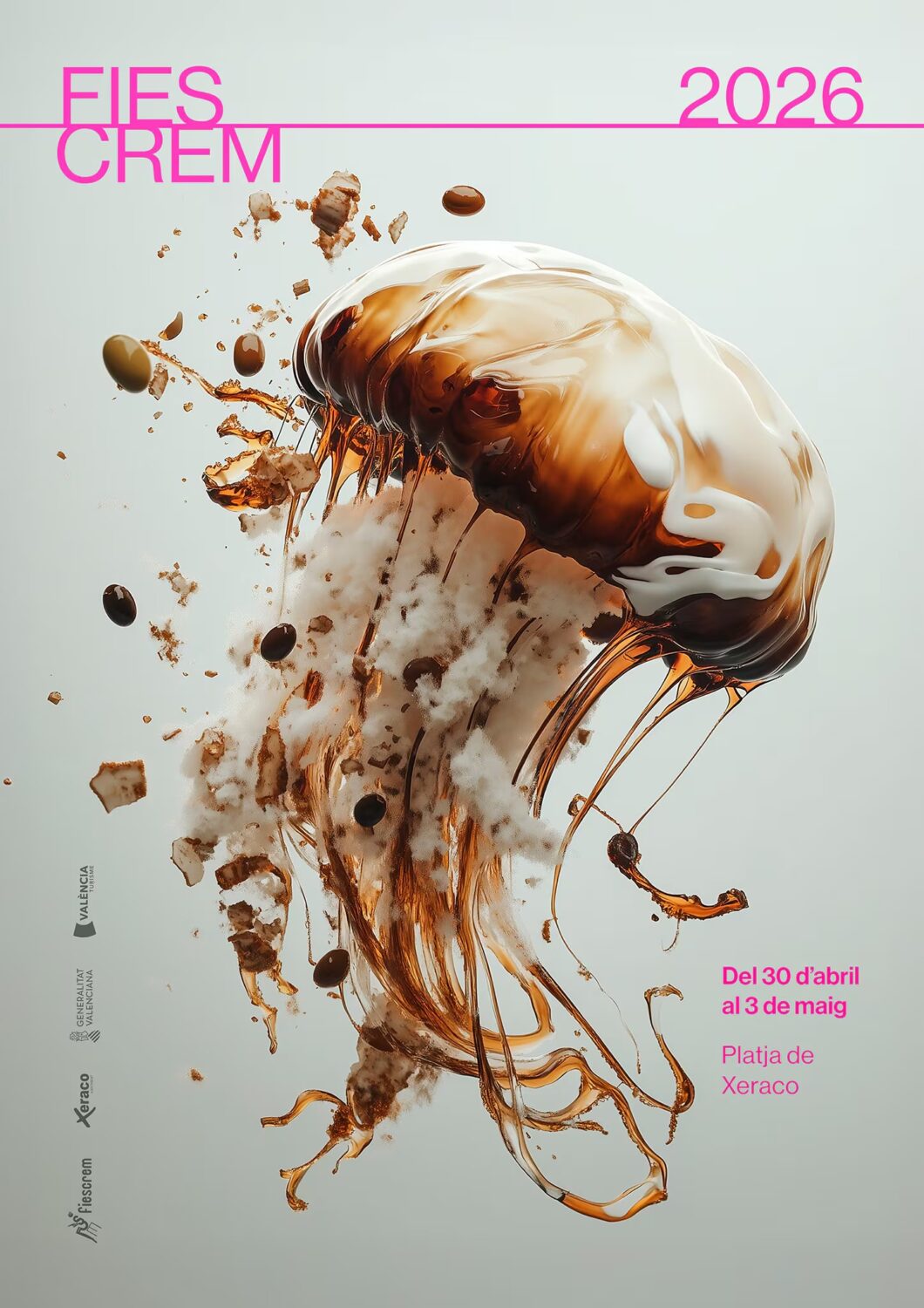 La Fiescrem 2026 llegará acompañada de una imagen renovada, con un cartel de estética fresca y desenfadada en el que destaca una medusa como elemento central. El diseño hace un guiño al carácter marinero de Xeraco y al inicio simbólico de la temporada estival, además de introducir un tono irónico y cercano que conecta con el espíritu festivo de la feria.